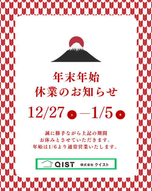 誠に勝手ながら、下記の期間を年末年始休業とさせていただきます。